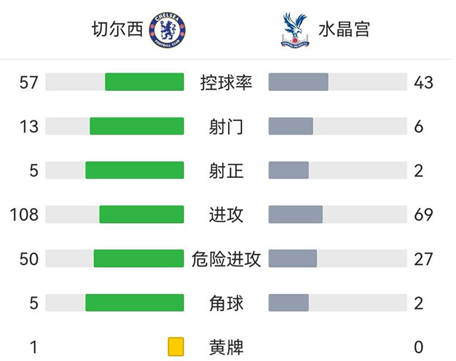第65分钟,切尔西前场反抢得手,哈弗茨禁区右侧带球突破,随后低平球横传,球被水晶宫球员挡了一下,奇克跟进迎球凌空爆射破门,切尔西1-0领先!