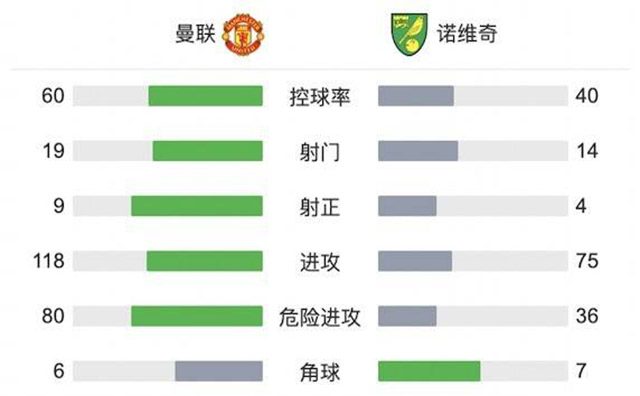 下半场伤停补时5分钟,随后全场比赛结束,曼联3-2击败诺维奇终结联赛两轮不胜。