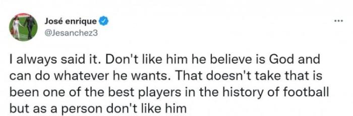 178直播04月11日讯 利物浦旧将何塞-恩里克日前在推特上谈论C罗摔球迷手机一事,他表示C罗以为自己是上帝。