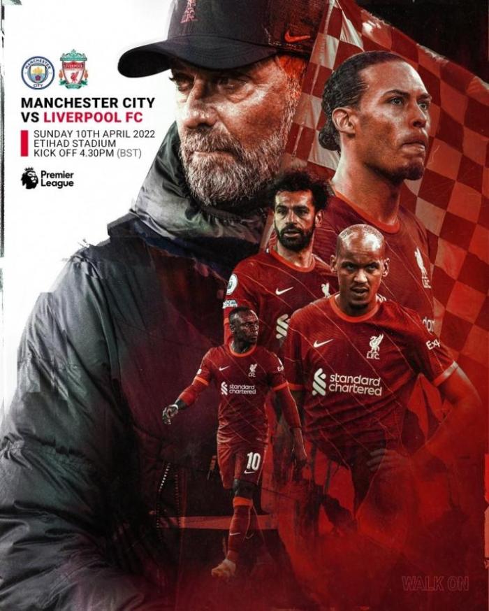 178直播04月10日讯 今晚23:30,英超将迎来榜首大战,曼城主场战利物浦。赛前,两支球队都发布了海报。