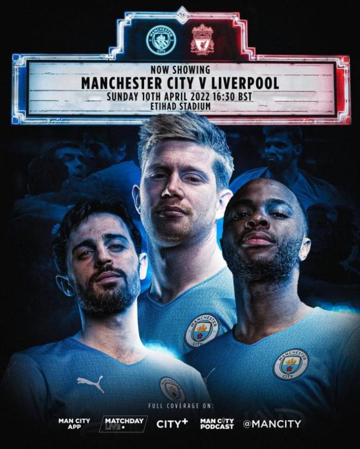 曼城官方发布了以B席、德布劳内和斯特林为主角的海报,并配文道:“准备好爆米花,今天是比赛日。”