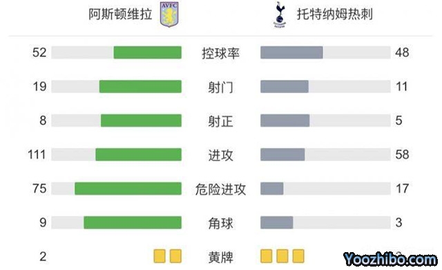 全场比赛结束,阿斯顿维拉0-4热刺!
