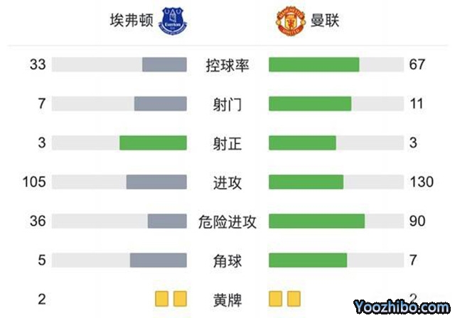 全场比赛结束,曼联0-1埃弗顿。