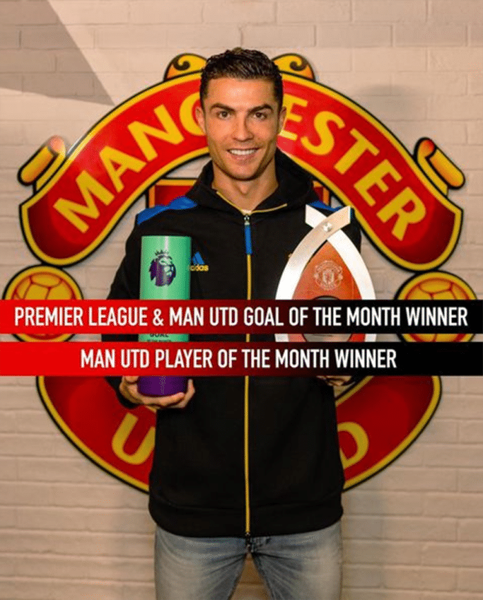 此外,曼联还评出了上个月的最佳球员,C罗只踢了两场比赛就获奖,他还拿到了英超官方评选的3月最佳入球奖项。