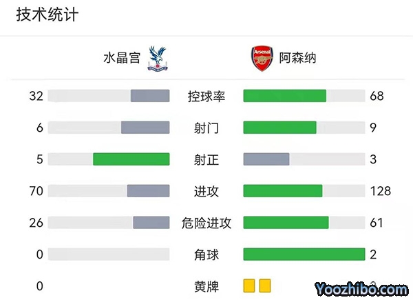 全场比赛结束,最终阿森纳客场0-3不敌水晶宫。