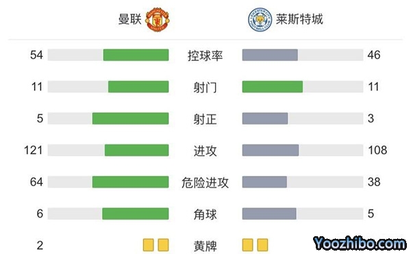 第66分钟,曼联快速扳平比分,曼联前场抢断,B费禁区弧顶处右脚射门被扑,弗雷德跟上补射破门!曼联1-1莱斯特城!