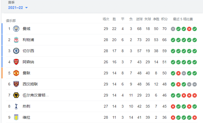 曼城此役无法拿下比赛,让英超争冠悬念再起,目前蓝月亮29轮70分排名第一,而利物浦则28轮66分排名第二。