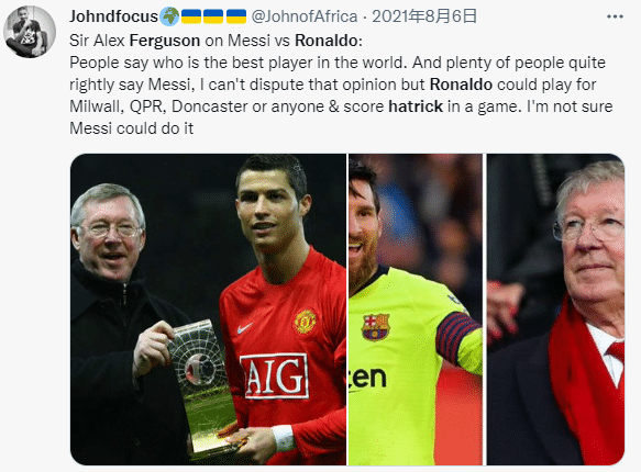 弗格森曾说:“说到谁是世界上最好的球员?很多人会说是梅西。你不能去争论这个观点。