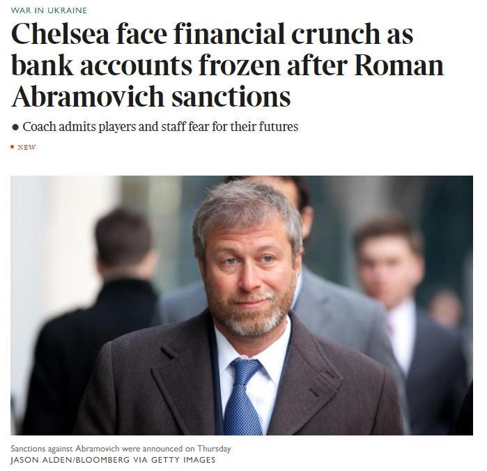 178直播3月12日讯 据《泰晤士报》报道,切尔西俱乐部的银行账户已被冻结,俱乐部的日常运营面临瘫痪。