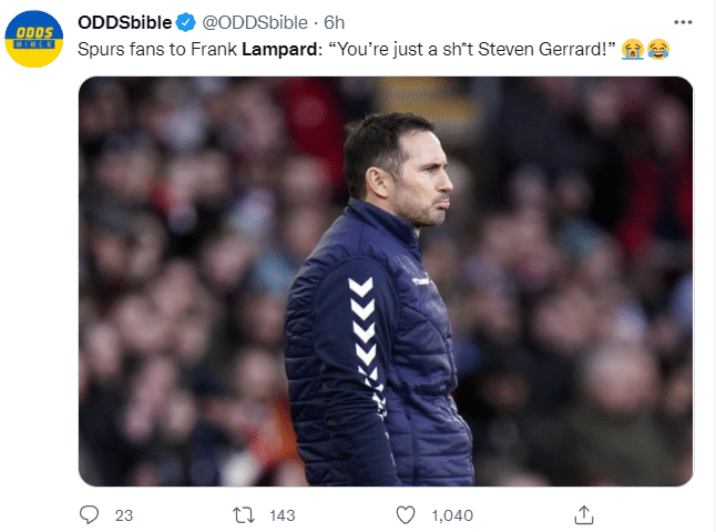 热刺球迷在比赛中高唱:“兰帕德,你就是个垃圾版的杰拉德。”