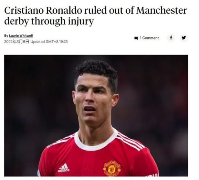 178直播03月07日讯 晚,来自英国权威媒体《 The Athletic》的消息,37岁的葡萄牙巨星C罗,将确定因伤无缘7日0点30分进行英超“曼市德比”。