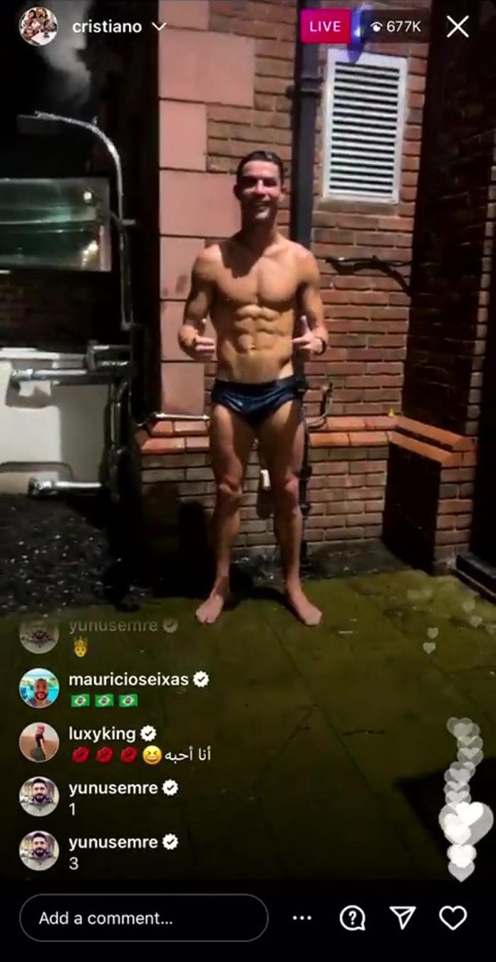 但C罗的影响力依然惊人,最近他晚上9点在自家后花园用花洒淋水时进行了直播,结果竟有67.7万人观看!C罗在镜头中竖起大拇指、敬礼并给观众一个飞吻。这不是C罗第一次搞直播,之前他播放过自己桑拿的画面,全场一句话没说,却吸引了75万人观看。