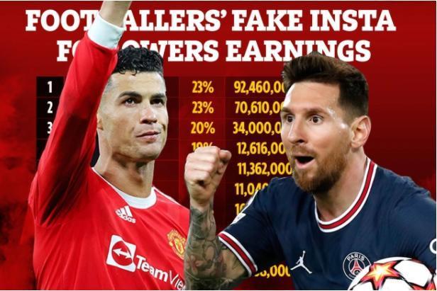 此前外媒统计,C罗的INS拥有4亿粉丝,其中9200万是僵尸粉。他每发一条赞助商状态就能入账169万英镑,而其中的38.8万英镑得益于这些僵尸粉。