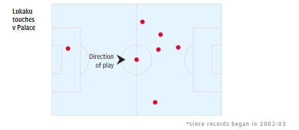 178直播02月21日讯 在近期结束的一场比赛中,卢卡库在切尔西1-0水晶宫的比赛中创造了一项尴尬纪录,全场比赛仅触球7次,这也打破了此前的最低触球纪录,他成为了02/03赛季英超开始统计触球次数以来,单场比赛触球次数最少的球员。