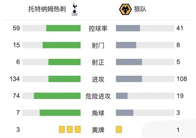 第6分钟,狼队形成连续打门,洛里连续两次扑出皮球,希门尼斯禁区内停球补射终于将球打进,狼队1-0热刺。