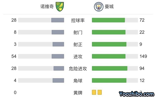 全场比赛结束,曼城客场4-0大胜诺维奇。