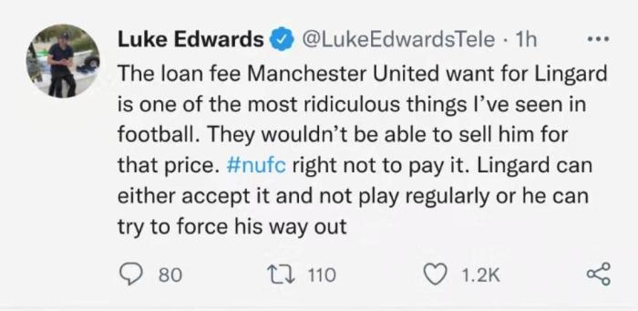 178直播01月27日讯 ,记者LukeEdwards在社交媒体上表示林加德的租借费是其见过最荒唐的事情之一。