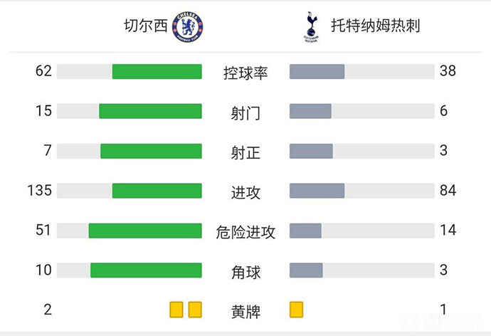 全场比赛结束,切尔西2-0热刺。