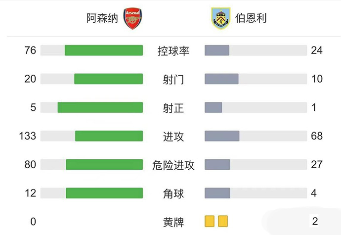 第90+1分钟,伯恩利打出反击,麦克尼尔左路突破后一脚抽射高出横梁。全场比赛结束,阿森纳0-0伯恩利。