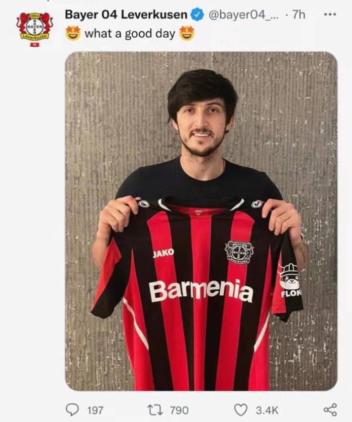 178直播01月23日讯 北京时间官方消息,勒沃库森官方宣布与伊朗国脚阿兹蒙达成转会协议,阿兹蒙将在本赛季结束后加盟勒沃库森,双方签约至2027年。