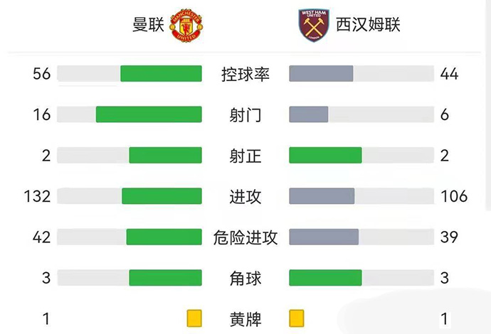 最终,曼联1-0西汉姆联。