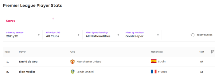 数据显示,本场过后,德赫亚以67次扑救,超越利兹联的梅斯利耶1次,登顶英超门将扑救次数榜首。一项研究结果显示,在欧洲五大联赛现任门将中,曼联门神是扑救最强的一人,没有之一,大多数守门员都倾向于出击客串清道夫,或者参与倒脚充当传控一员时,西班牙国门仍然保持着传统型门将的作风。
