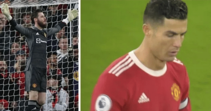 看到这个惊魂的瞬间,曼联门将德赫亚也表达不满,C罗也高举双手向队友表示歉意,很显然这次C罗的行为差点让全队都付出代价,他的回传并不到位,高举双手抱歉,好在没有丢球。