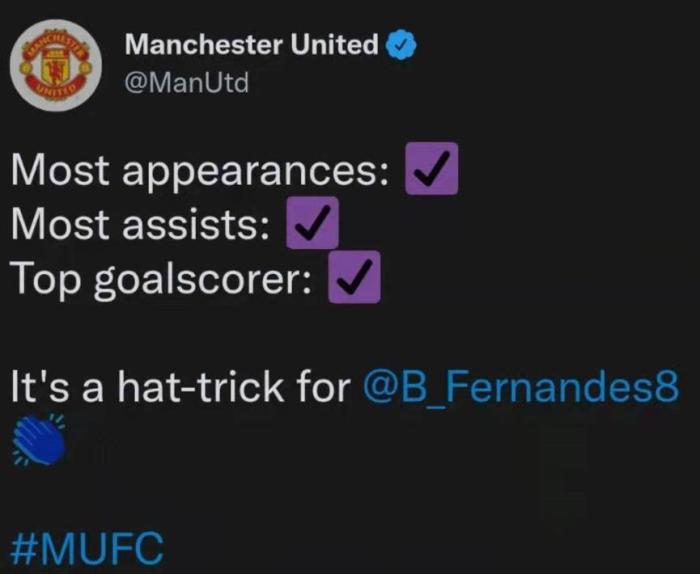 值得一提的是,B费2021年的出场次数(58次)和助攻数(18次)也都是球队之最。