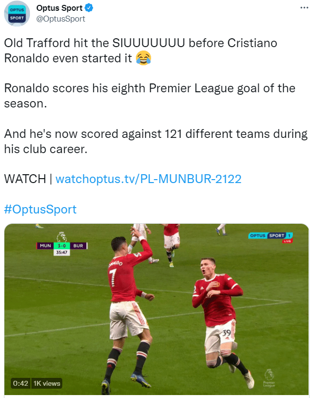 统计表明,伯恩利是C罗职业生涯攻破的第121支俱乐部。