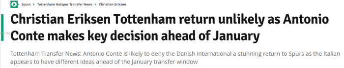 迪马济奥说:“我认为埃里克森不太可能回到热刺,他的身体状态现在无法跟上孔蒂的要求。”