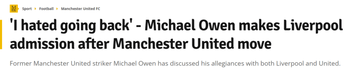 178直播12月19日讯 据英国媒体《曼彻斯特晚报》报道,前曼联、利物浦球员欧文在接受《每日邮报》采访时表示,自己讨厌以球员身份回到利物浦。