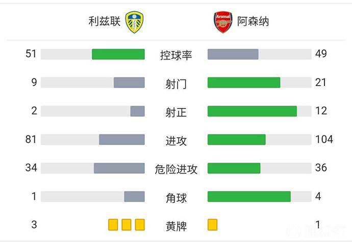 最终全场比赛结束,阿森纳4-1利兹联。