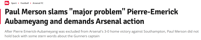178直播12月18日讯 近日,阿森纳名宿保罗-默森在接受英国媒体《每日星报》采访时表示,阿森纳当初就不该给奥巴梅扬那份续约合同。