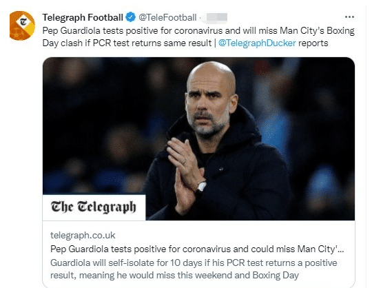 目前瓜帅正等待更为准确的PCR测试,如果结果依然是阳性,他将隔离10天,缺席对纽卡斯尔、莱斯特城(12月26日)和布伦特福德的多场比赛。
