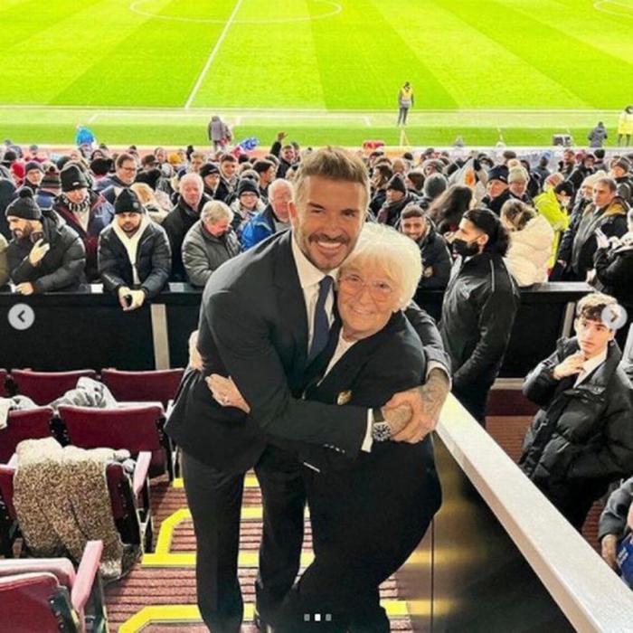 178直播讯 在周中曼联击败阿森纳的英超比赛中,「万人迷」贝克汉姆带着次子罗密欧成为老特拉福德的座上嘉宾。而在梦剧场看台上,小贝也与昔日曼联的前台老太凯希重逢。值得一提的是,凯希不仅是俱乐部工作人员,在小贝背井离乡从伦敦到曼联青训体系踢球时,也曾住在她家,后者是英格兰巨星的照顾者。