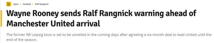 鲁尼说:“朗尼克是一位经验丰富、令人敬仰的教练,但他接手曼联会面临艰巨的挑战。我没有质疑他的能力,只是他需要在短时间内让球队按照他的想法去比赛。”