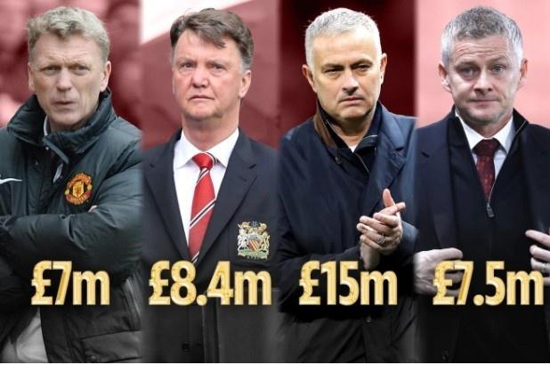 通过解雇这4位主帅,曼联也支付了3800万英镑解约金,其中莫耶斯拿到700万英镑,范加尔拿到840万英镑,穆里尼奥拿到1500万英镑,索尔斯克亚拿到750万英镑。