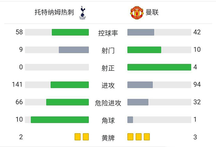 全场比赛结束,曼联客场3-0完胜热刺。