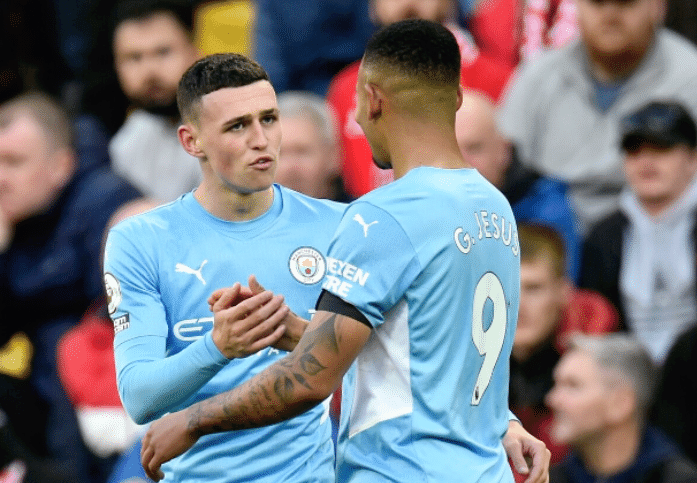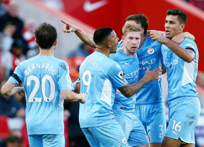 曼城虽然最近两场先后在欧冠0-2输给了巴黎圣日耳曼,在英超第7轮2-2踢平利物浦,但是本赛季英超单线成绩依然出色,7轮4胜2平1负,暂列第三名,保持稳定的争冠节奏,攻守均衡,打进了14球只丢3球,在没有超级中锋的情况下火力全开,本赛季各项赛事10场比赛有13人完成破门,分别是马赫雷斯、热苏斯、费兰-托雷斯、格拉利什、斯特林、福登、德布劳内、京多安、伯纳多-席尔瓦、罗德里-埃尔南德斯、坎塞洛、拉波尔塔、阿克。