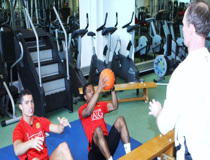 克雷格的记忆中,C罗对待体能训练的每个细节动作都全神贯注。18岁到24岁那段,他在曼联从来不做高负重练习,更多是轻量负重的足球技巧训练,然后逐渐增加练习强度、长期重复或者改变负重重量。任何力量训练,都以有球能力为原则,绝不尝试任何可能影响到他控球灵敏度的力量训练。