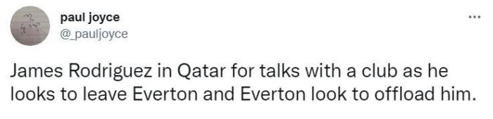 178直播讯据英国媒体《泰晤士报》记者PaulJoyce报道,哥伦比亚中场哈梅斯-罗德里格斯正在与一支卡塔尔球队谈判。