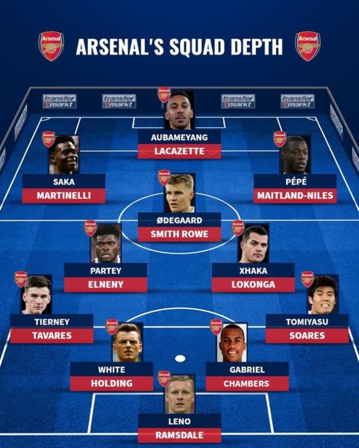 178直播9月06日讯 德国转会市场盘点了阿森纳的阵容厚度,枪手可以排出两套实力强劲的阵容。