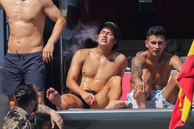 178直播9月06日讯 昨天5日晚,效力于英超埃弗顿队的哥伦比亚巨星哈梅斯-罗德里格斯(J罗)在个人社交账号上晒出了自己与好友的惬意度假照。J罗与好友来到了西班牙的伊维萨岛度假,在J罗晒出的照片中,他穿着沙滩裤,戴着渔夫帽,赤膊秀出大好身材,十分悠闲轻松。而游艇上,除了J罗和他的好友之外,还有诸多颜值颇高的美女环绕左右。
