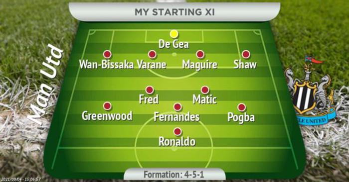 《每日镜报》预测曼联对纽卡首发(4231):德赫亚/万比萨卡,瓦拉内,马奎尔,卢克·肖/马蒂奇,弗雷德/格林伍德,布鲁诺·费尔南德斯,博格巴/C罗。