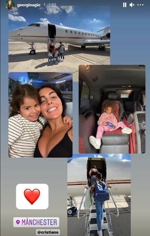C罗回归曼联后,乔尔吉娜和几个孩子随他来到曼彻斯特。乔尔吉娜在INS上晒出了和几个孩子登机的照片。