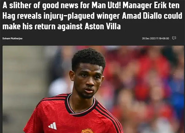 178直播12月27日讯 曼联主帅埃里克-滕哈格表示,阿马德-迪亚洛和后卫拉斐尔-瓦拉内可能会在对阵阿斯顿维拉时复出。