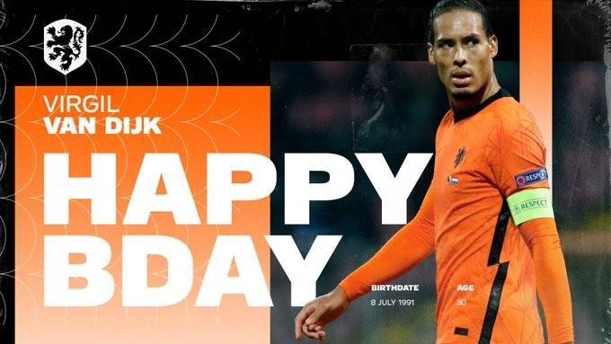 178直播讯 利物浦中卫范迪克今天迎来了自己30岁生日,荷兰国家队官方发推祝他生日祝福。