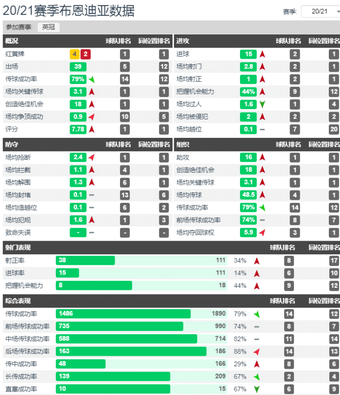 而布恩迪亚本赛季多项数据位列英冠榜首,他打进15球是英冠所有中场球员中最多的,他助攻16次,是所有球员中最多的。他场均贡献关键传球3.1次,是英冠最高的,他创造绝佳机会18次,是英冠最多的。他场均传球48.5次,是英冠球员中最多的。而且他场均抢断2.4次,是英冠同位置第一,场均拦截1.1次,英冠同位置第一,场均解围1.3次,英冠同位置第一;场均夺回球权5.9次,英冠同位置第一。