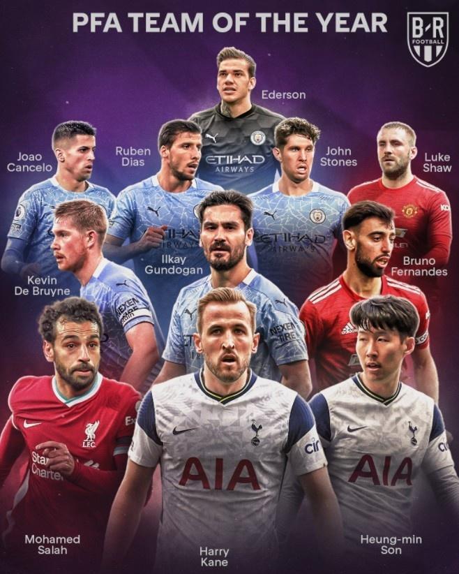 178直播讯 北京时间6月5日,PFA(英格兰球员协会)发布了年度最佳阵容,联赛冠军曼城共有6位球员入选,曼联、热刺各有两位球员入选。