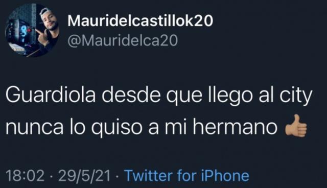 赛后,阿圭罗的弟弟在推特上发文炮轰瓜迪奥拉,他写道:“自从瓜迪奥拉执教曼城,他就一直不喜欢我哥哥。”